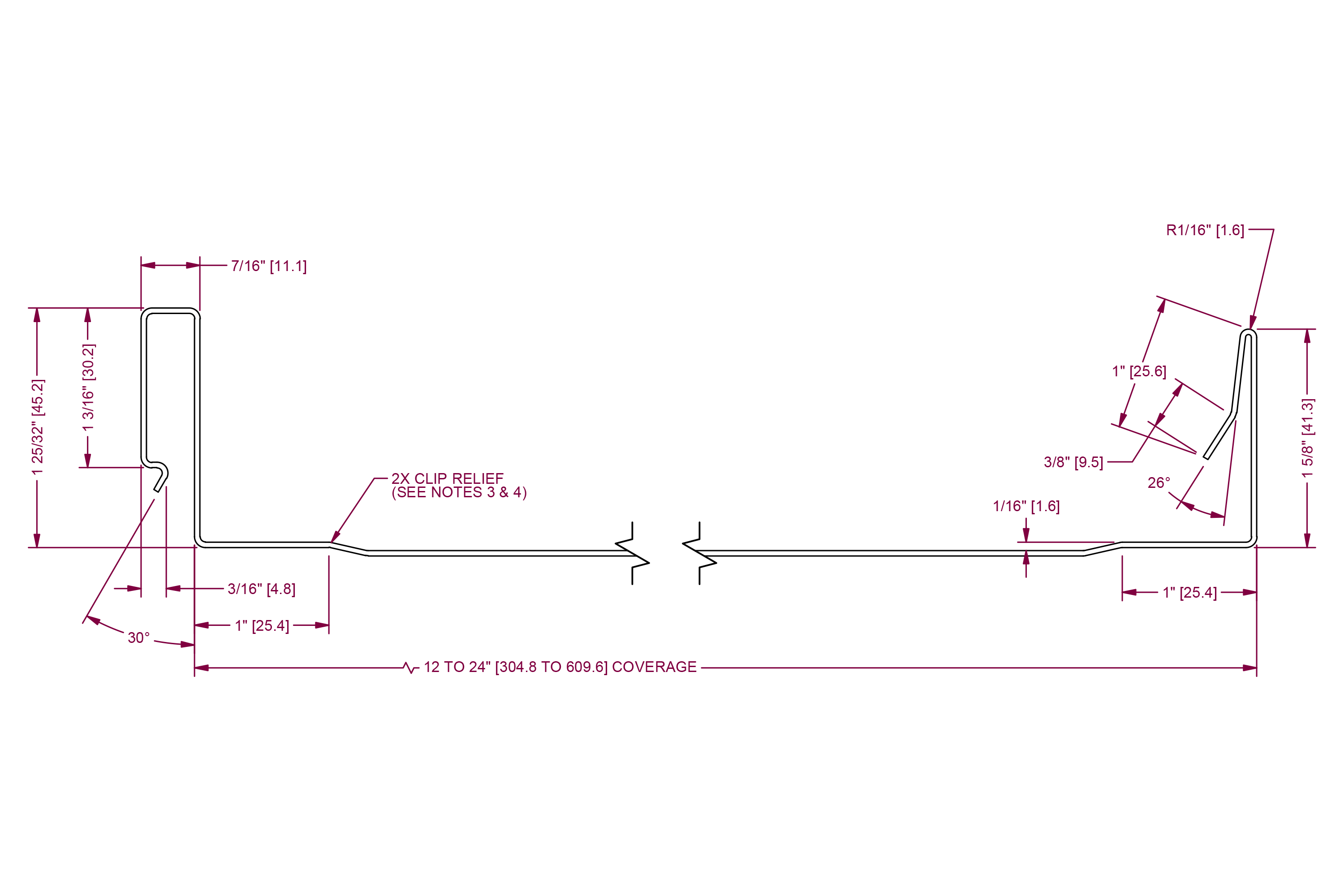 • Panel material: 28 ga. to 22 ga. steel (painted, Galvalume, coated galvanized), .027″ to .040″ aluminum (painted), and 16 oz. to 20 oz. 3/4 hard copper